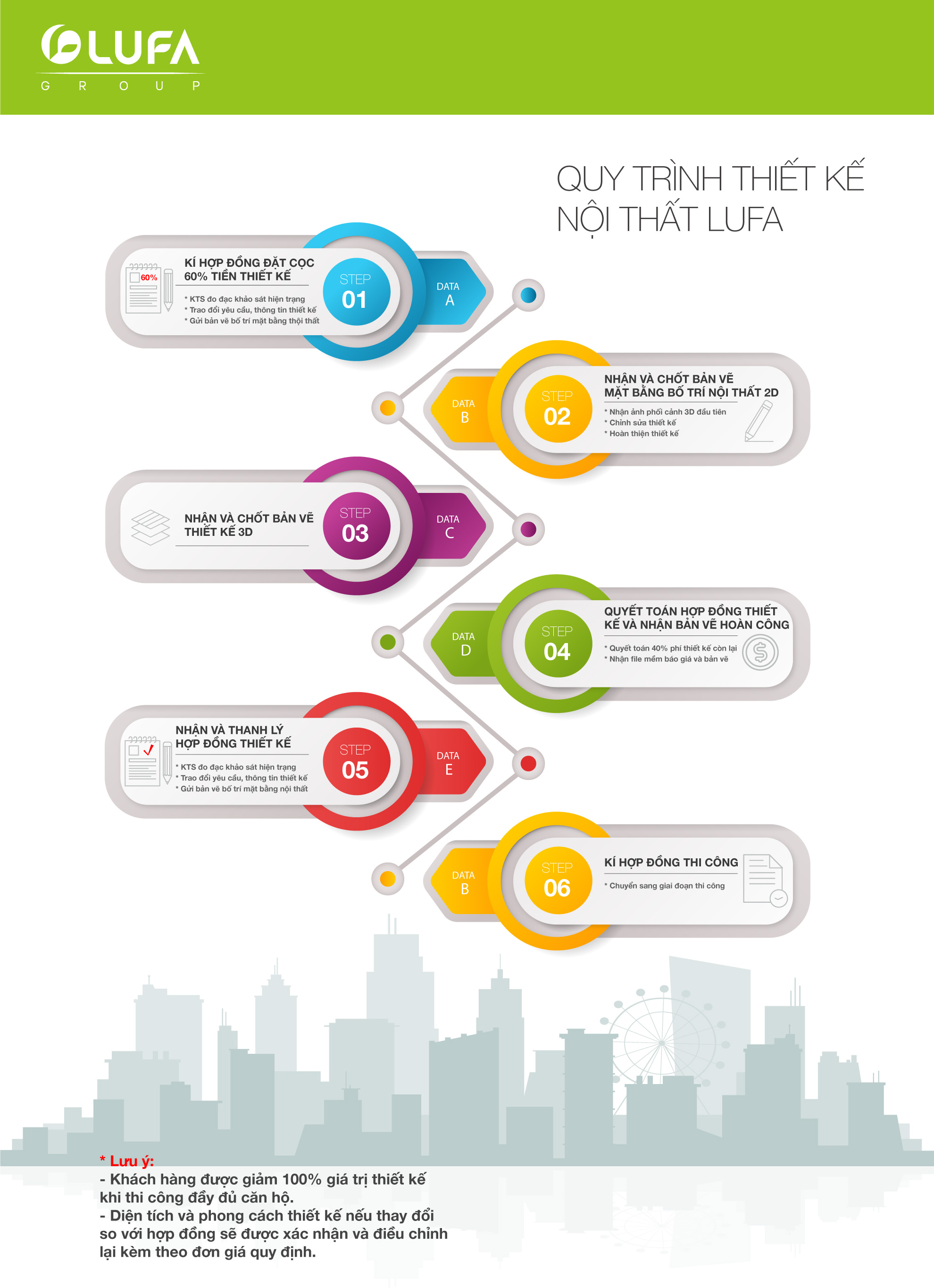 - Sau khi 2 bên thống nhất xong tất cả các nội dung trên, nội thất LUFA sẽ gửi đến khách hàng hợp đồng thiết kế .