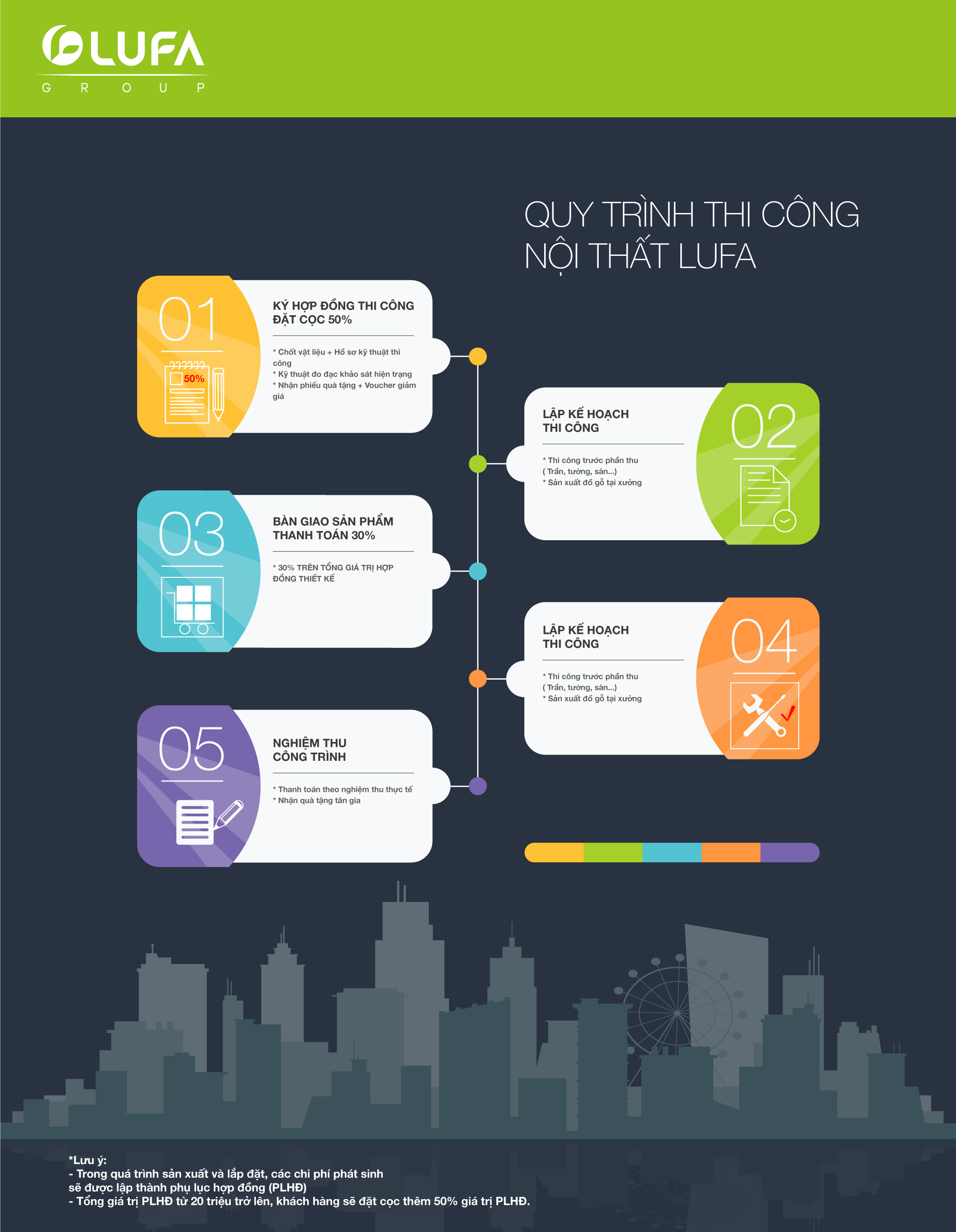 - Cán bộ kỹ thuật LUFA sẽ lập kế hoạch thi công cho phù hợp nhất, đảm bảo tiến độ thi công.