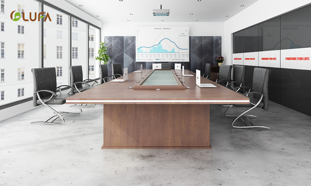 Nội thất dành cho phòng họp được LUFA thiết kế theo phong cách đơn giản, hiện đại và có tính thẩm mỹ cao với đường nét được gia công tỉ mỉ, sắc nét. Màu sắc đa dạng cùng cách phối màu hợp lý đáp ứng đa dạng nhu cầu họp của doanh nghiệp, tổ chức.