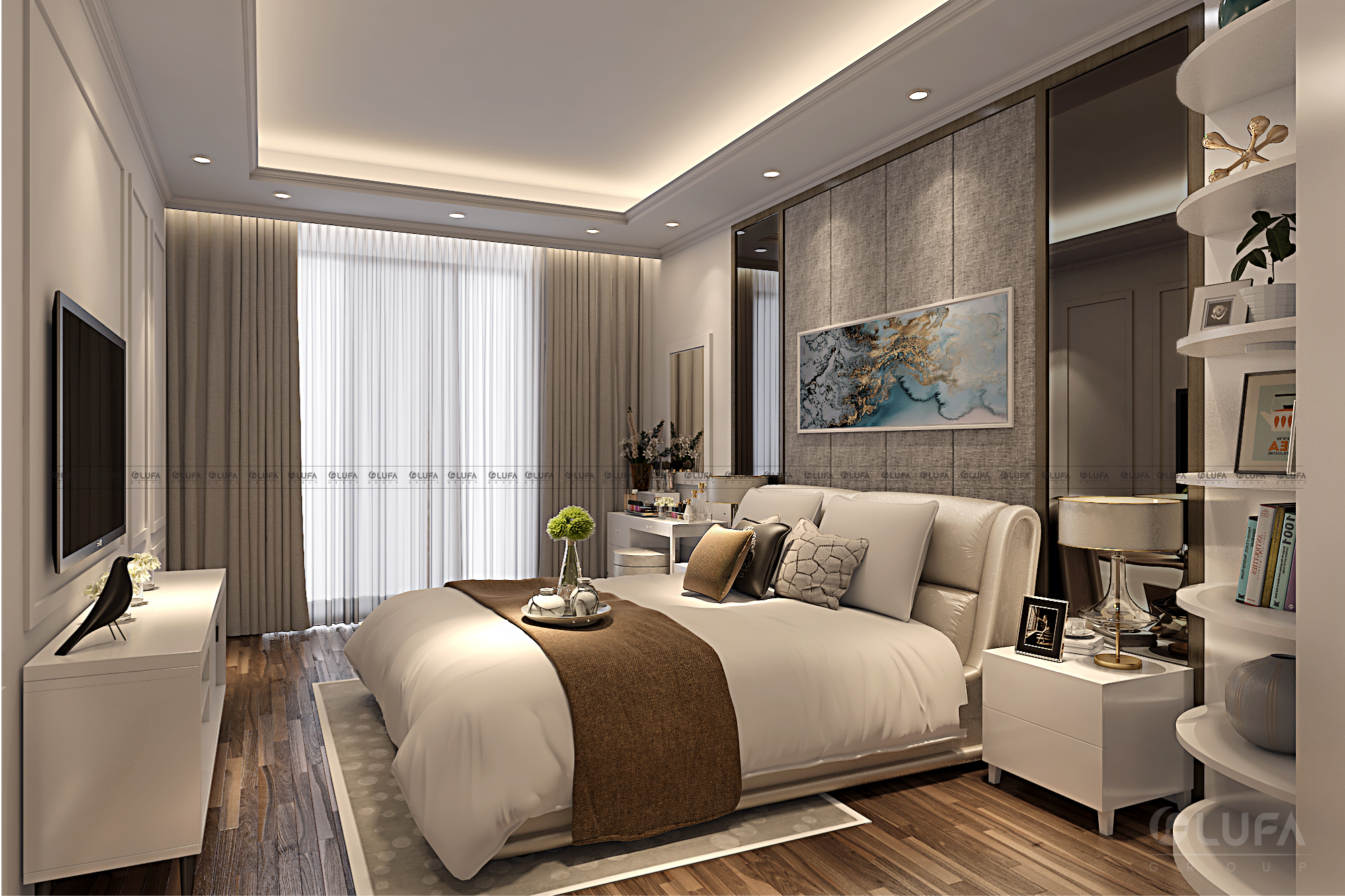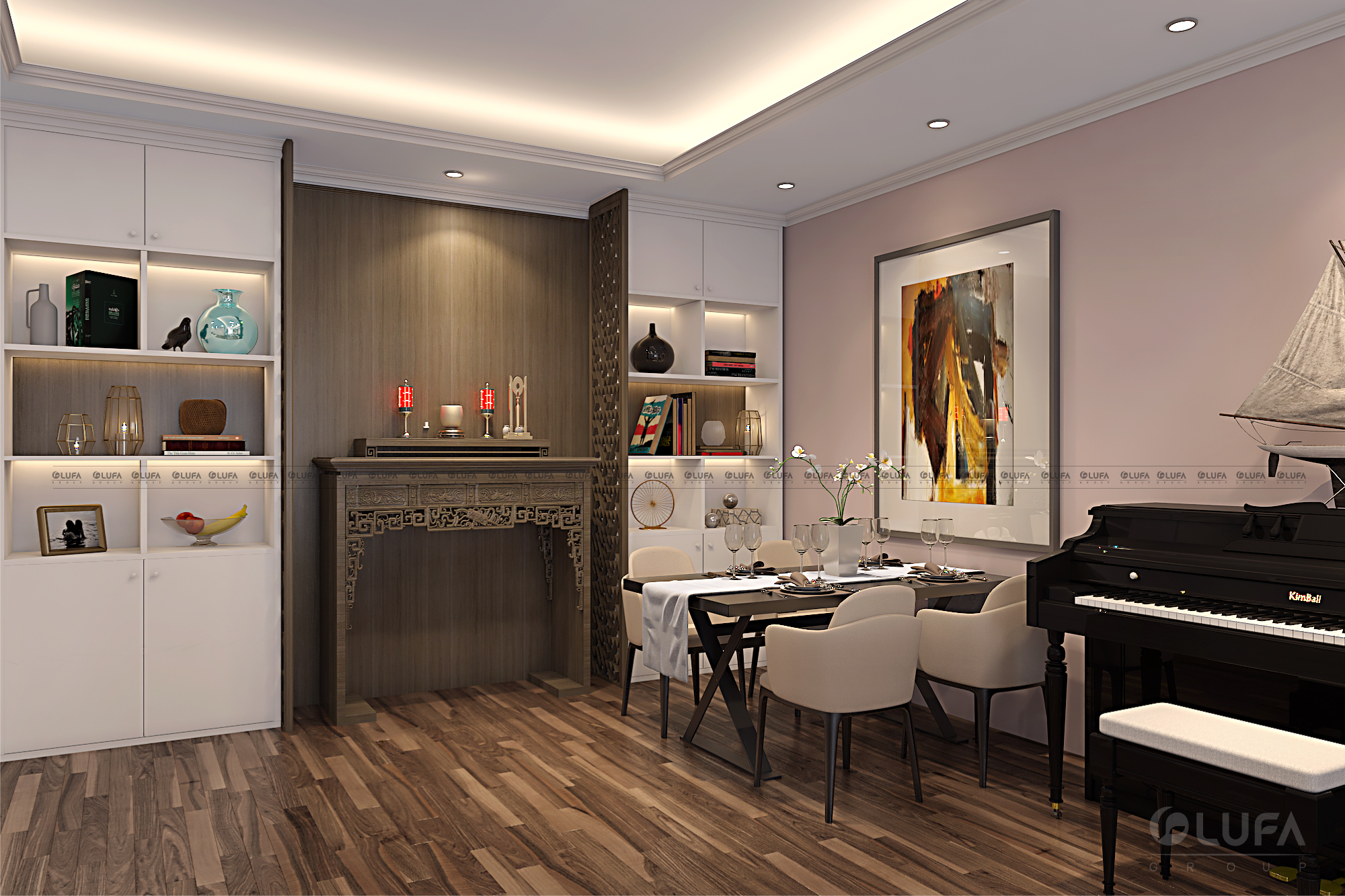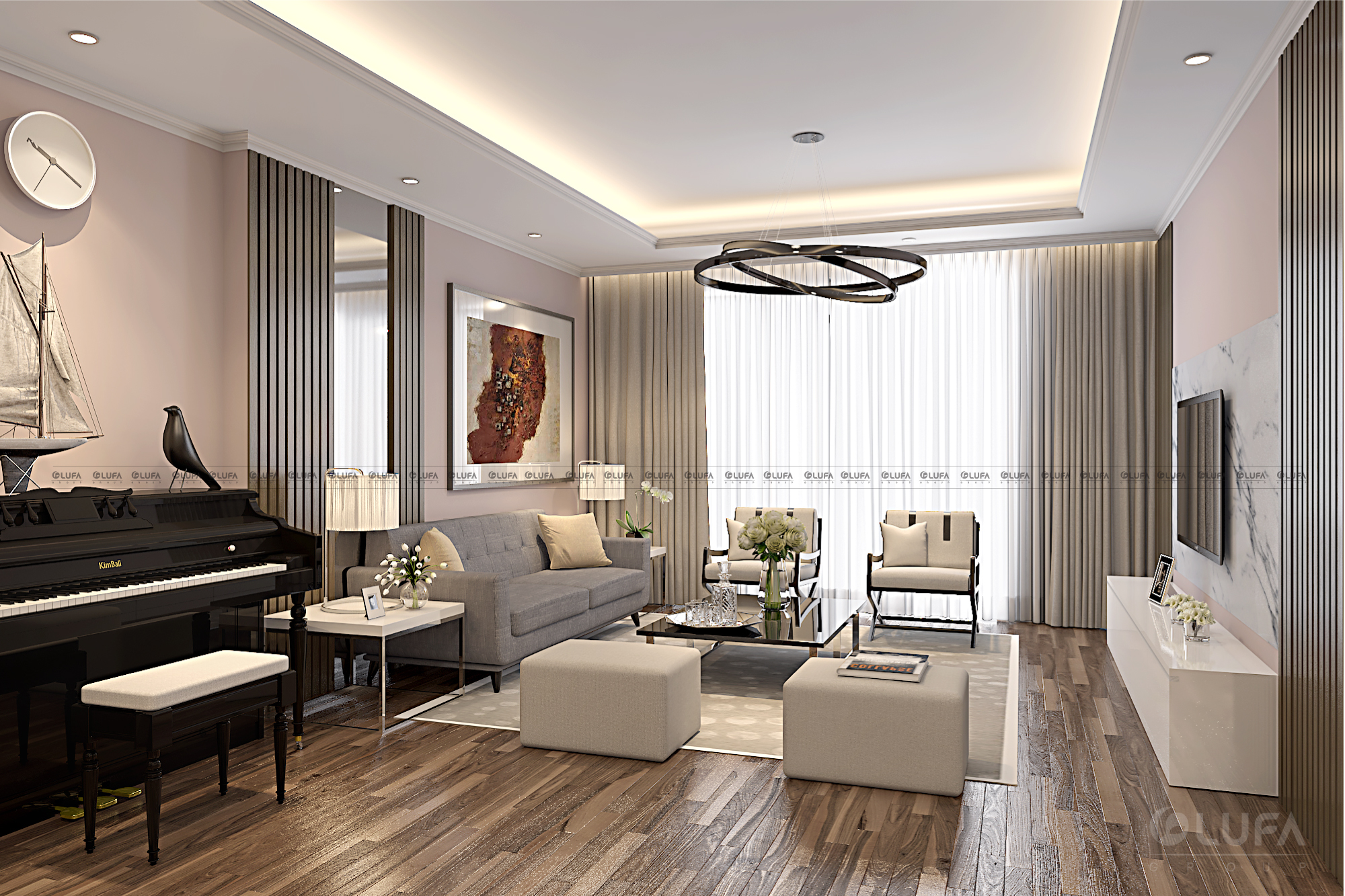 Trong không khí đó, chủ một căn hộ mới nhận tại khu Golden Palm đã thuê thiết kế nội thất để dọn về ở trước Tết Kỷ Hợi. Chị yêu cầu nội thất thiết kế sao cho hợp với xu hướng và phải có gout riêng. Trên cơ sở đó, công ty TNHH FAMI ( Nội thất LUFA ) đã đưa ra mẫu thiết kế bên dưới.