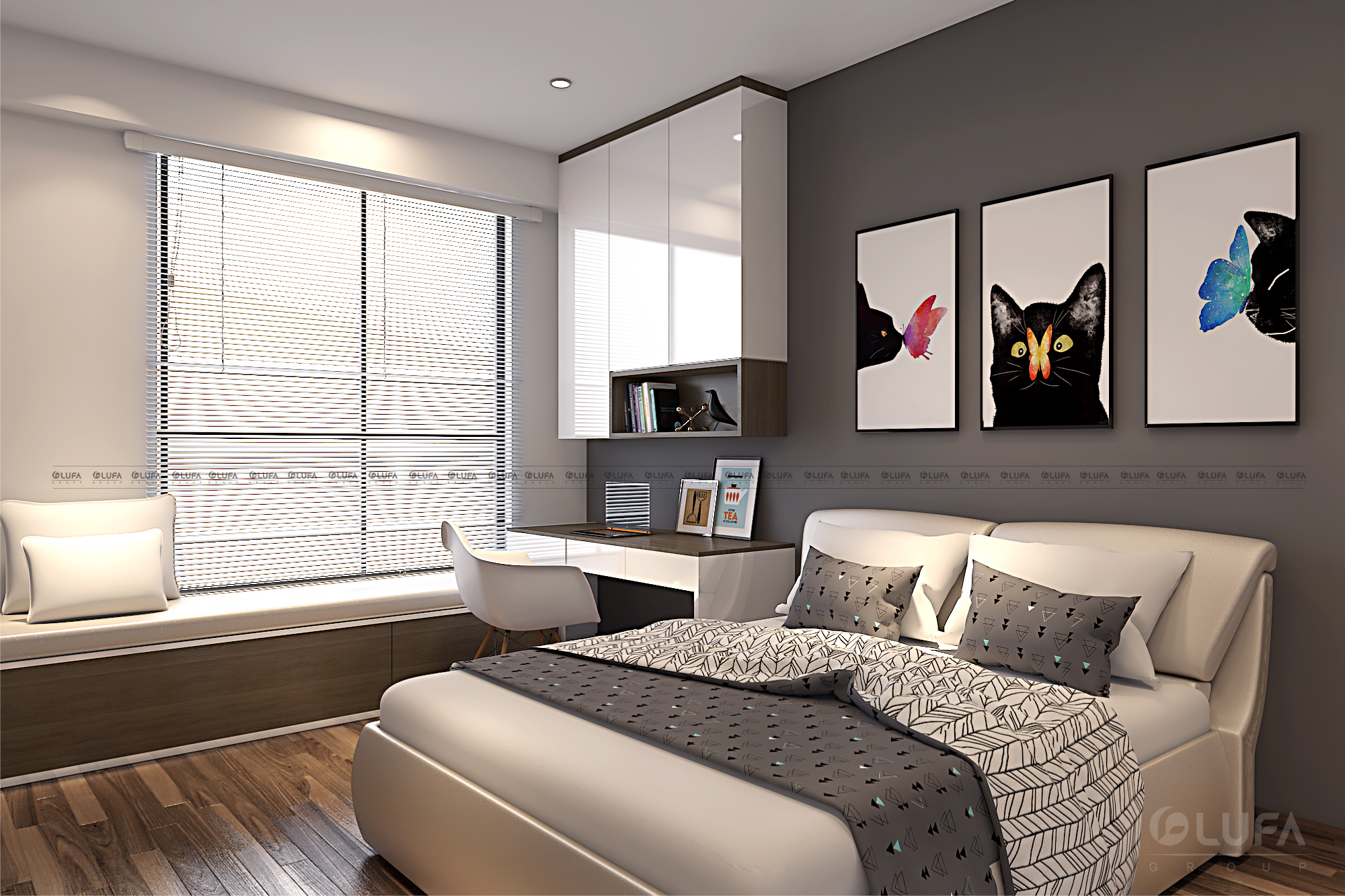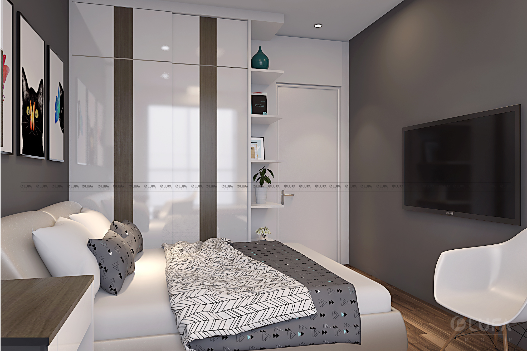 Căn hộ có hai phòng ngủ nên không gian có nhiều thứ để tha hồ gia chủ thể hiện phong cách riêng của mình cho từng phòng. Vì vậy, LUFA và gia chủ thống nhất phương án mở cho từng căn phòng.