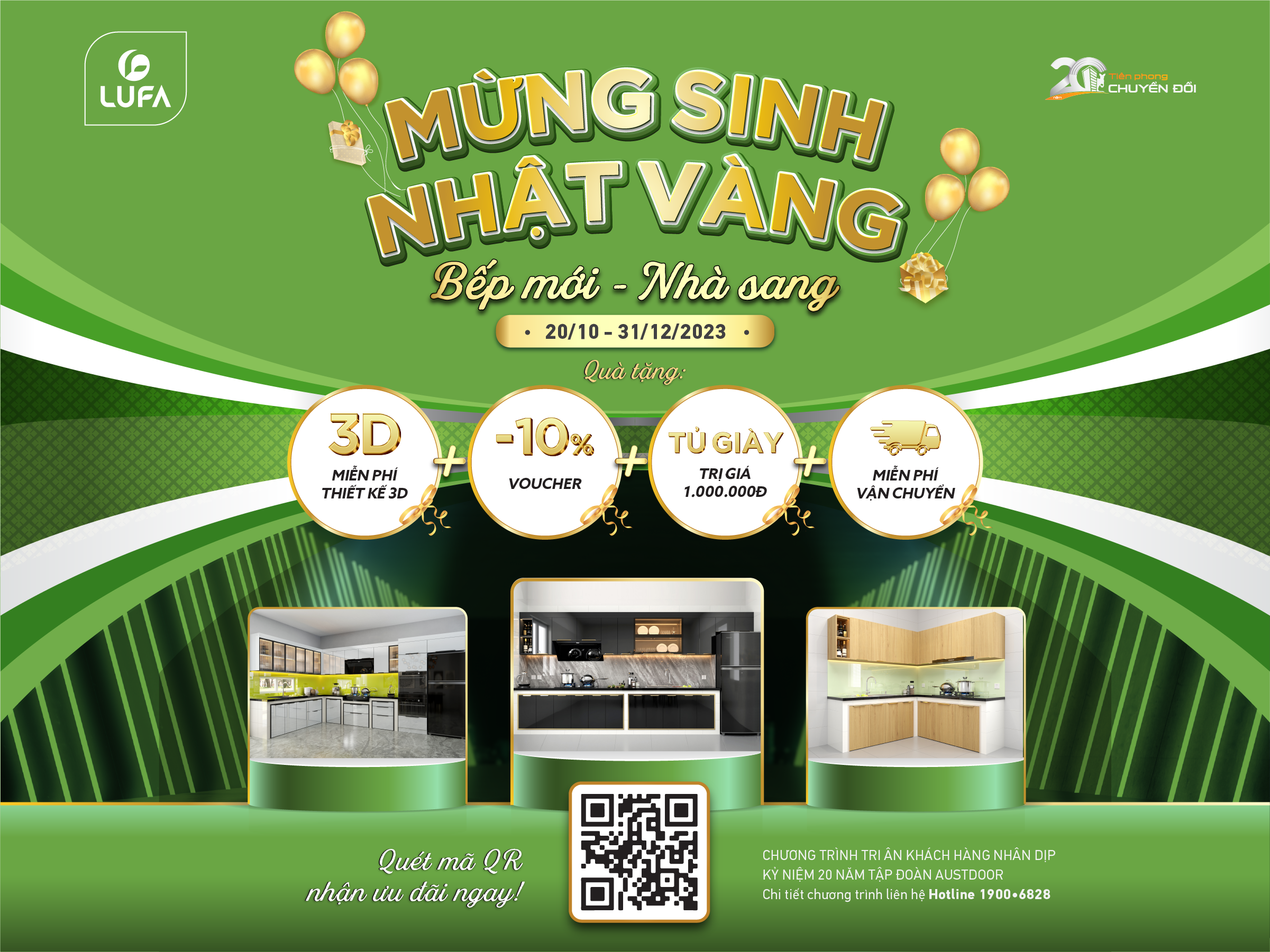Chương trình "Mừng sinh nhật vàng - Bếp mới nhà sang" là món quà đặc biệt mà thương hiệu Nội thất Lufa dành tặng tri ân Quý khách hàng nhân dịp kỷ niệm 20 năm thành lập Tập đoàn Austdoor, với mong muốn thay đổi diện mạo cho căn bếp, hô biến không gian bếp trở nên thẩm mỹ, hiện đại và tiện nghi hơn.