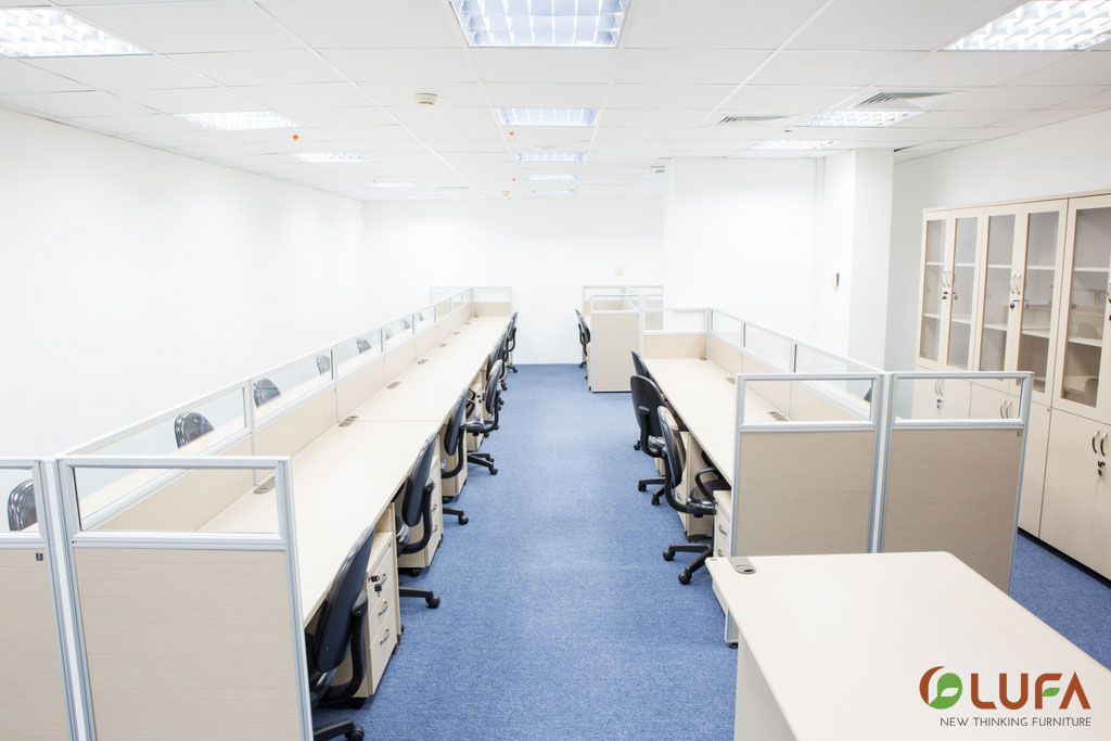 Ngoài yếu tố về công năng, tính thẩm mỹ trong thiết kế nội thất văn phòng được hiểu như nét đẹp trực quan mà thiết kế mang lại khi đặt mình vào văn phòng. TP Bank lấy màu tím là màu chủ đạo và màu cam là màu xen kẽ, vì vậy trong quá trình thiết kế và lắp đặt các sản phẩm nội thất văn phòng LUFA luôn luôn lưu ý điều này. Vì vậy LUFA đã tạo nên sự kết hợp hài hòa giữa màu sắc chủ đạo của TP Bank và sự sáng tạo kiểu cách của các vật dụng nội thất văn phòng.
