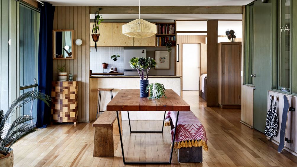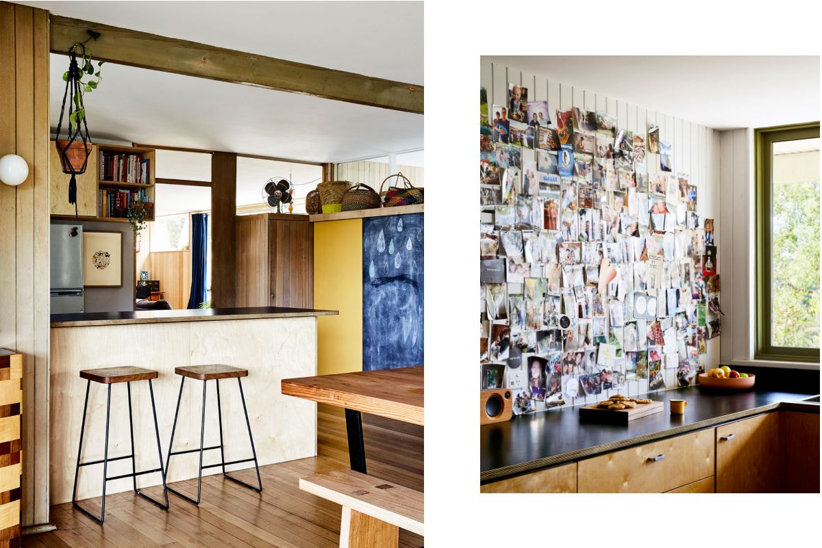 Ban đầu họ đã dựng lên ý tưởng mới dựa trên những thiết kế cũ, nhưng vẫn giữ các tay cầm tùy chỉnh giống như Robin Boyd đã sử dụng. Chúng tôi ngâm chúng trong giấm và đặt chúng mới mẻ trở lại trong nhà bếp, (Emma giải thích). Tủ đồ uống, ghế băng, gương và bàn do Lee làm.