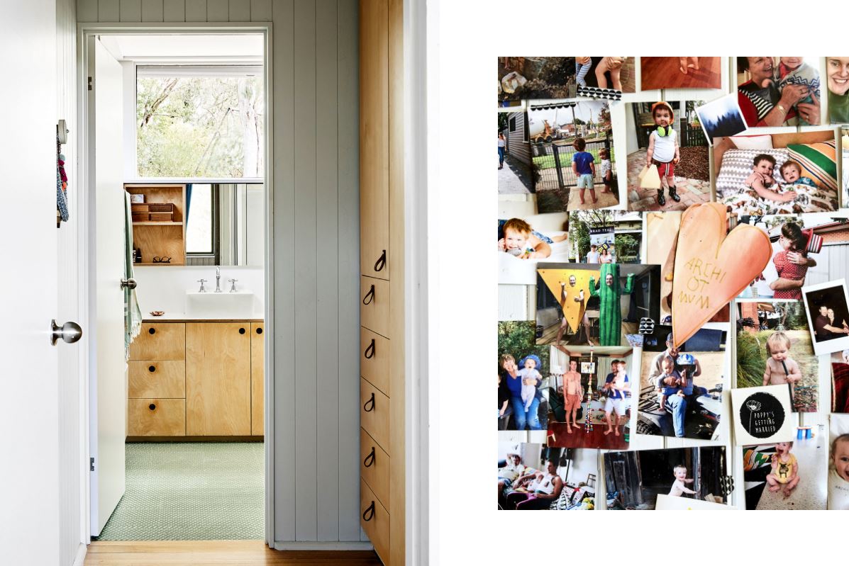 Bức tường gia đình. Chúng tôi bắt đầu dán một vài bức ảnh khi chúng tôi mới chuyển đến, nhưng bây giờ chúng đã chiếm toàn bộ bức tường nhà bếp! Ngôi nhà được xây dựng để mọi phòng đều có tầm nhìn ra những ngọn cây trên sông Yarra.