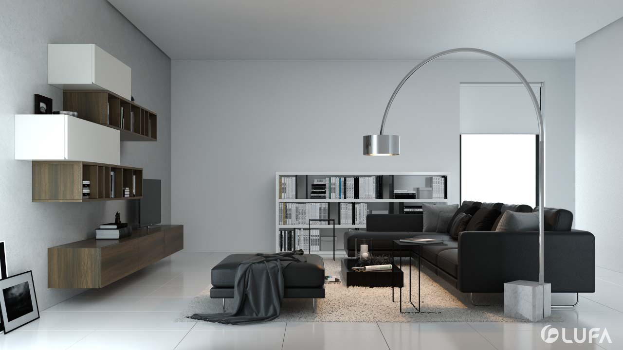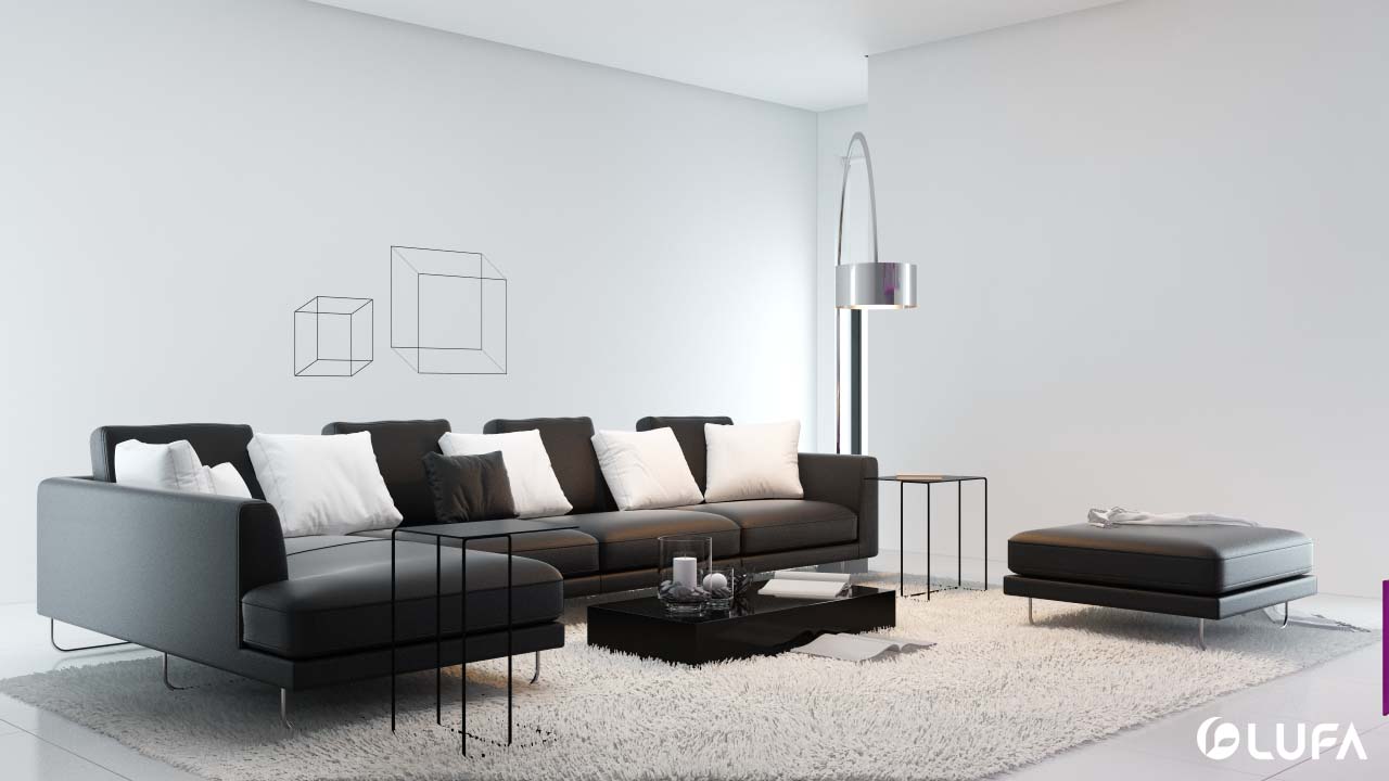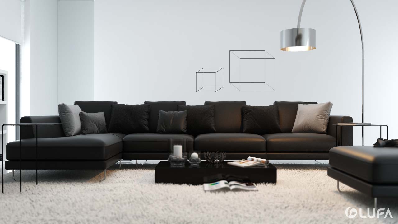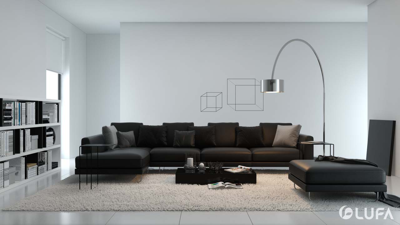 Không gian sang trọng của chất liệu da nhưng lại cho cảm giác ấm áp của vải, bộ nội thất tạo nên không gian phòng khách thư giãn, quyến rũ và hiện đại với sự kết hợp giữa ba màu trắng, nâu gỗ và đen.
