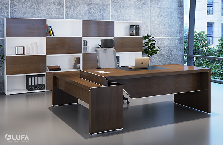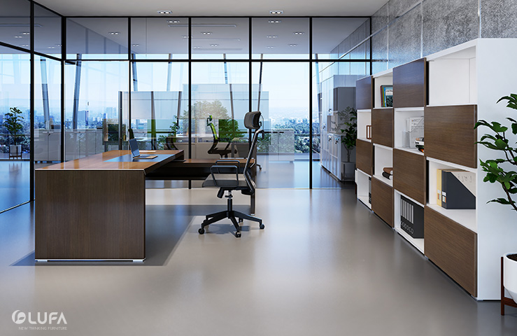 Hệ bàn và tủ được thiết kế theo phong cách đơn giản, hiện đại hướng tới tiện ích và hiệu năng sử dụng. Màu trắng chủ đạo kết hợp màu xanh lá cây mang lại cảm giác tươi mới. Bộ sản phẩm phù hợp với không gian độc lập dành cho vị trí Trưởng phòng.