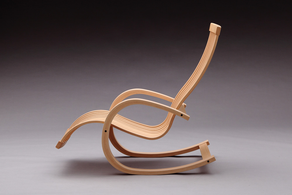 "Ghế dựa Dacco" (2015 / Thiết kế: Yojiro Tanaka, Sản xuất: Tendo Kikko) Một chiếc ghế bập bênh cho Công chúa Dacco với ván ép đúc. [Trường thủ công nội thất đương đại Hachioji].