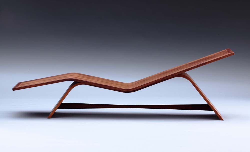 "Shaise Long" (2014) Ghế dài phòng khách bằng gỗ uốn cong với gỗ dán đúc bằng gỗ óc chó Mỹ.