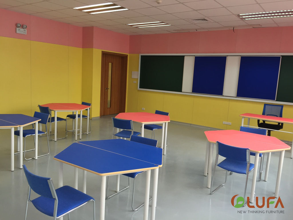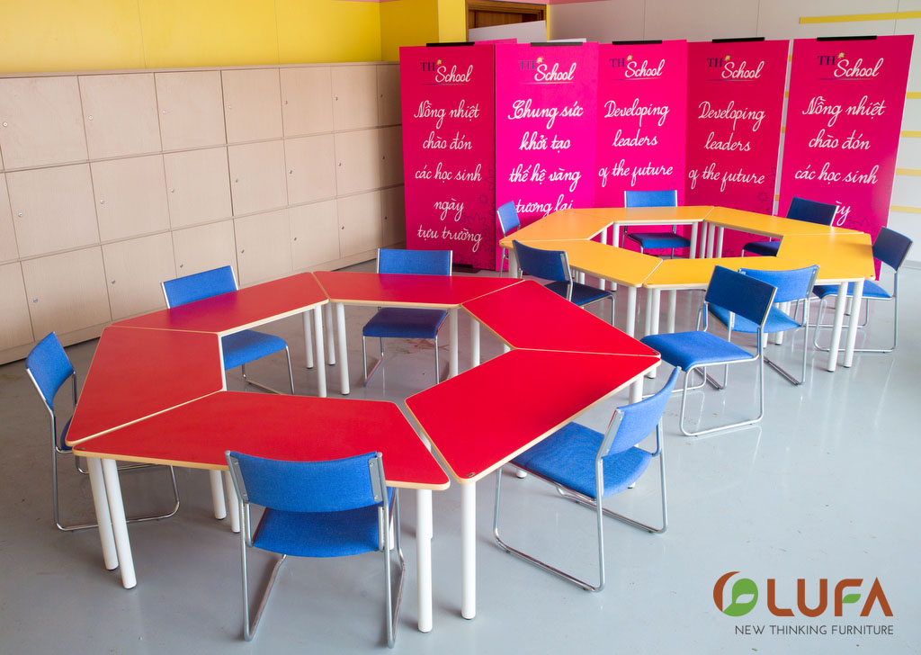 Hệ bàn linh hoạt ghép thành nhiều dạng bàn học khác nhau tùy hoàn cảnh và mục đích