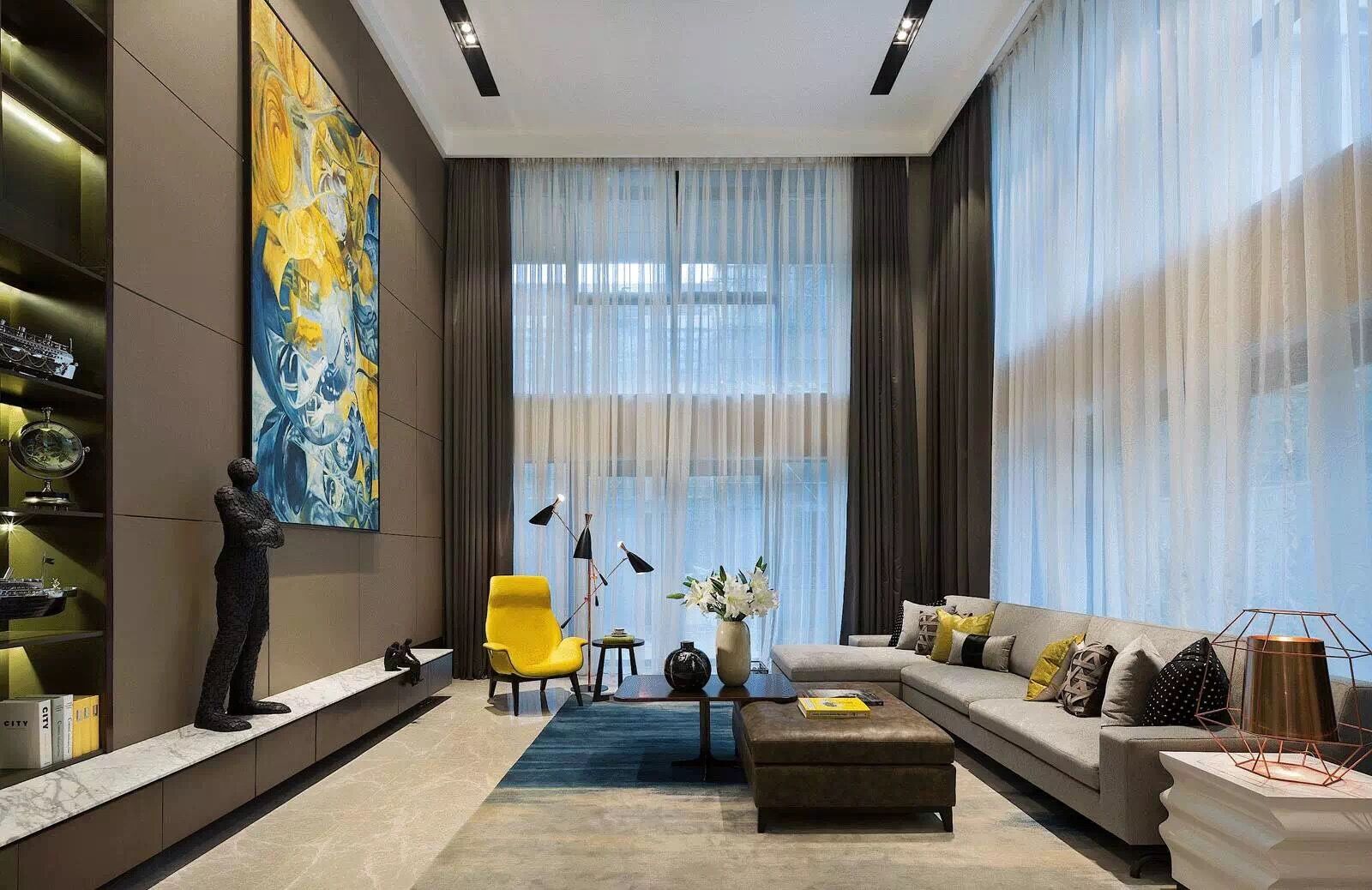 Phòng khách trang trí đơn giản nhưng đầy tính nghệ thuật. Dù lấy gam màu trầm như xám, nâu làm chủ đạo nhưng không gian vẫn hết sức nổi bật với một vài mảng màu vàng nhấn nhá. Không khí trầm buồn trở nên sống động và vui tươi hơn hẳn.