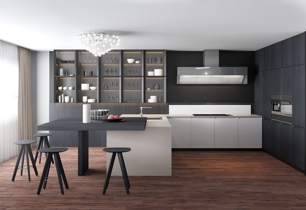 Nhà bếp trở thành trung tâm của căn nhà. Không gian bếp ngày càng được chú ý hơn khi người ta ngày càng coi trọng những bữa ăn gia đình và việc nấu nướng trở thành niềm vui, thậm chí là nghệ thuật. Năm 2020, màu đen là tông màu chủ đạo dành cho bếp. Mặc dù là một tông màu đậm nhưng nó lại rất hấp dẫn đối với không gian này. Bên cạnh đó, các tông màu gỗ, màu xanh dương, màu xám cũng được thay thế cho tone trắng trước đây. Xu hướng thiết kế nội thất mới sẽ không còn là xu hướng của những chiếc kệ mở, thay vào đó sẽ là những phòng bếp với những chiếc tủ gỗ với khả năng lưu trữ lớn hơn, đa chức năng hơn.